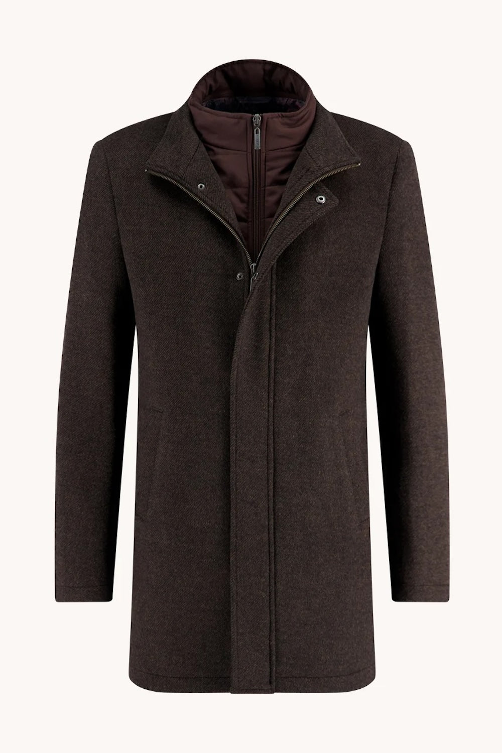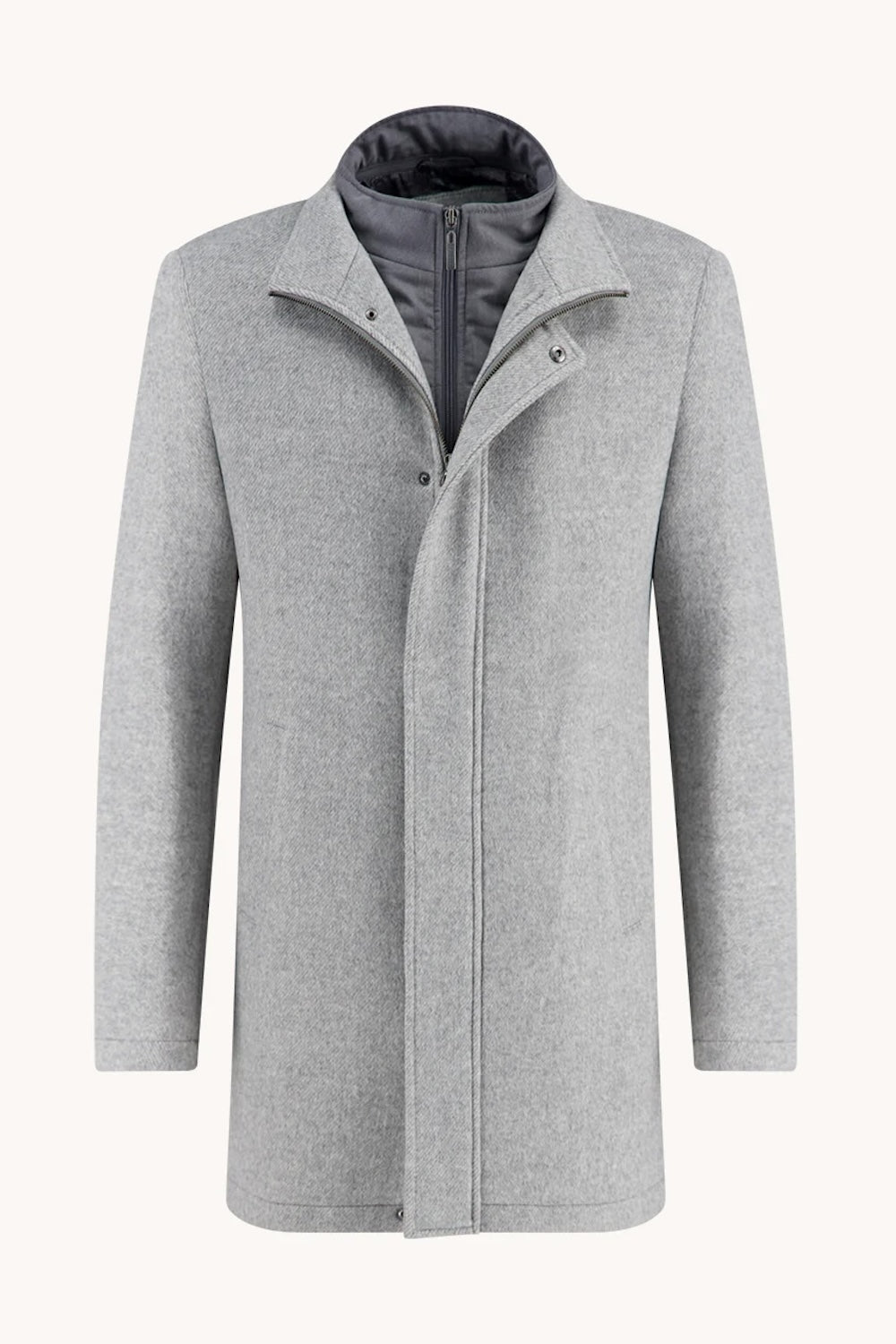 Stay warm and stylish with this versatile Funnel Neck Coat, designed for layered comfort in any season. The distinctive funnel collar provides extra warmth and a modern silhouette, while two front pockets keep your essentials within reach. Featuring a convenient front zipper and button closure for flexible fastening options, plus a detachable zippered bib that adapts to your needs.