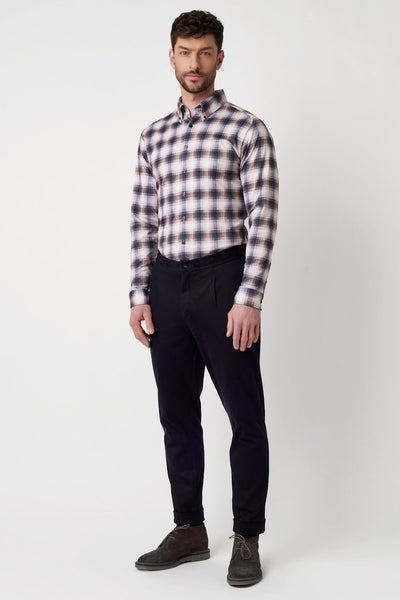Long-Sleeved Knit Sport Shirt in Blue-Brown Check