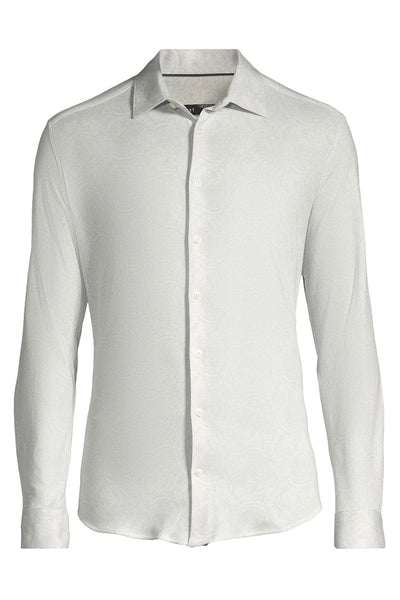 Long-Sleeved Dress Shirt With Diamond Print in White