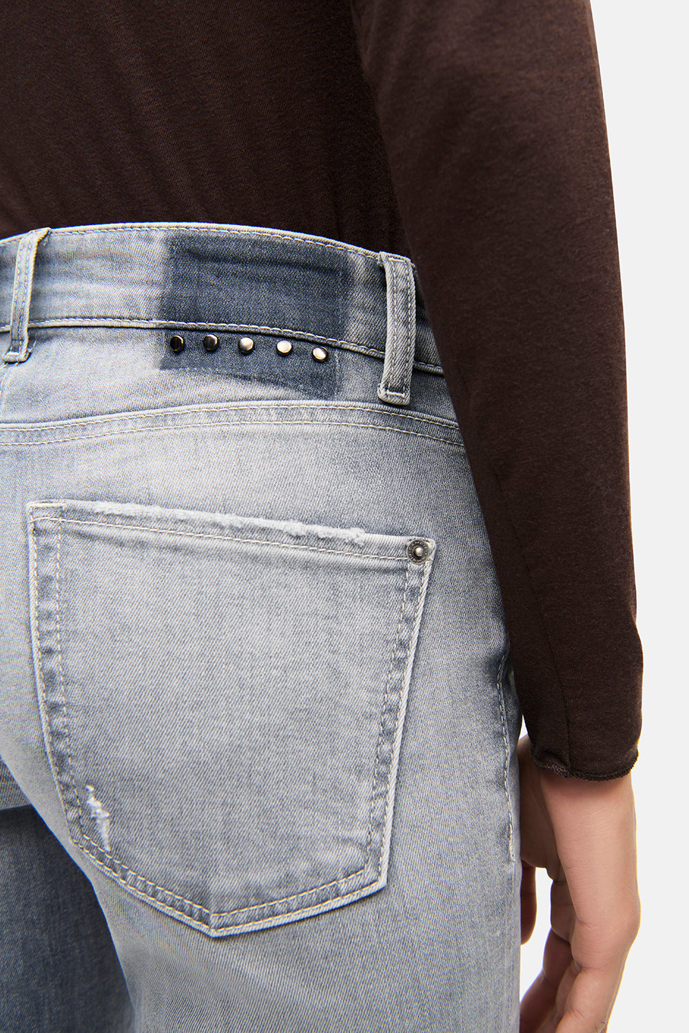 The Paris Flared Full-Length Jean combines timeless design with contemporary details. Crafted from gray denim enhanced by a subtle shadow effect on the pocket, these jeans feature rivet accents on the front pocket and back label for distinct character. The inclusion of elastane ensures a tailored fit and superior comfort throughout the day. Finished with classic five-pocket styling, this versatile pair is perfect for both casual and polished looks.