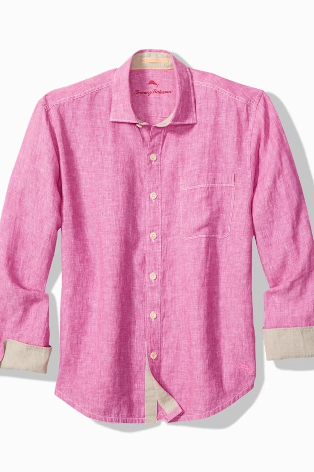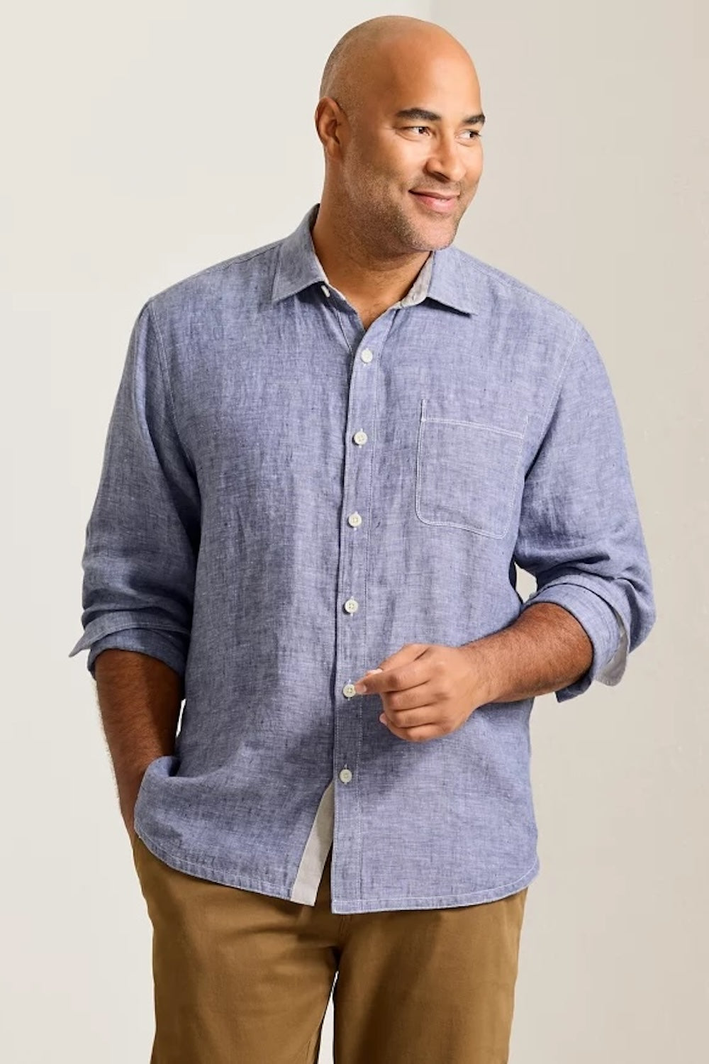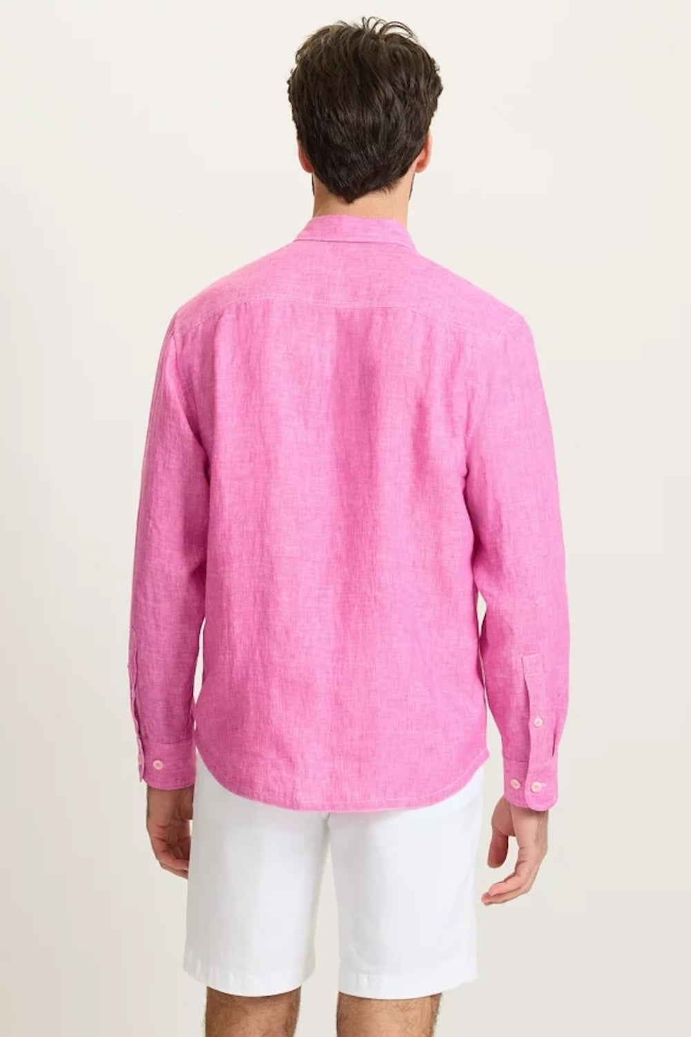 • 100% Linen • Two-piece stand collar • Rounded patch chest pocket • Shirttail hem • Embroidered Marlin logo at the hem • Care according to label instructions