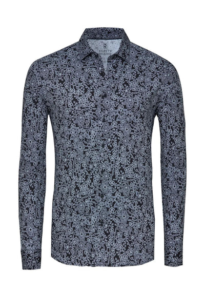 Julian Long Sleeve Woven Shaped Shirt in Navy Floral Print