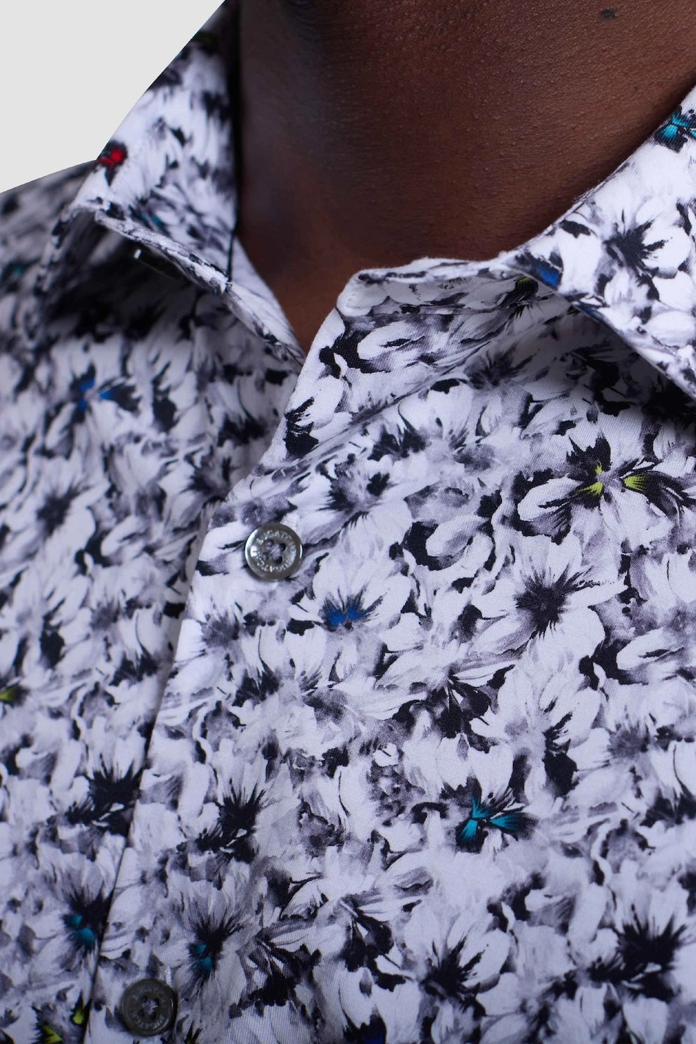 The James OoohCotton long-sleeved shirt in a floral print features mother-of-pearl buttons, and a curved hem for a sleek tucked or untucked look. The notched cuffs are adjustable to allow for customized fit and also convertible to accommodate cufflinks. OoohCotton is wrinkle-resistant, breathable, and easy-care cotton blend with 8-way stretch, quick-dry, and thermal comfort properties.