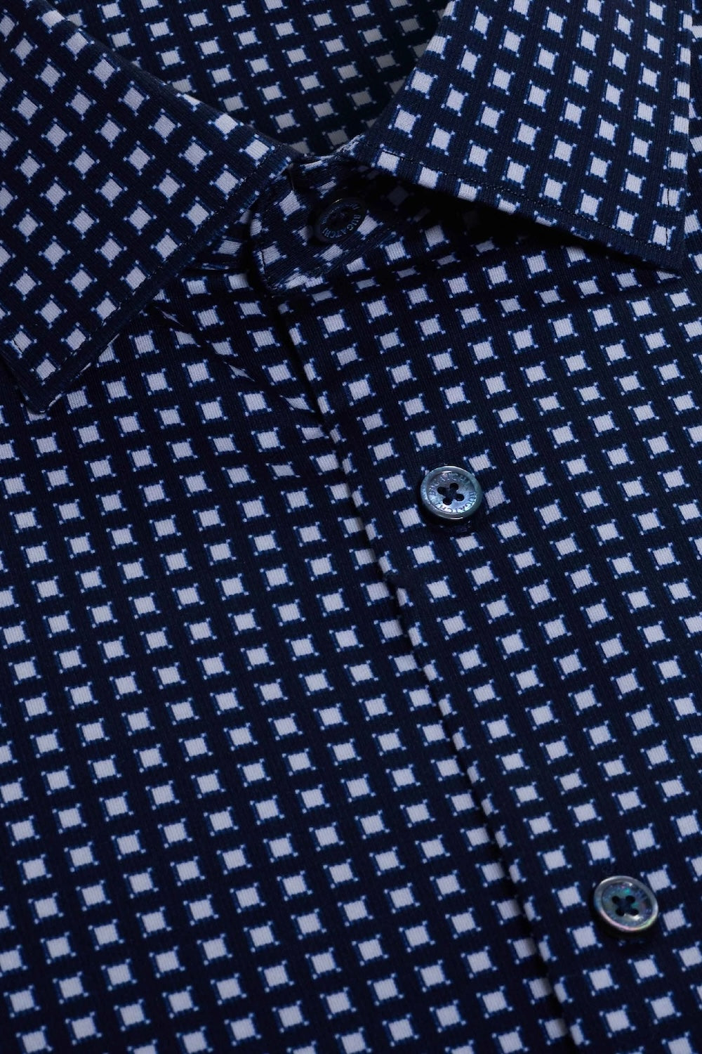 The James OoohCotton long-sleeved shirt in a grid print features mother-of-pearl buttons, and a curved hem for a sleek tucked or untucked look. The notched cuffs are adjustable to allow for customized fit and also convertible to accommodate cufflinks. OoohCotton is wrinkle-resistant, breathable, and easy-care cotton blend with 8-way stretch, quick-dry, and thermal comfort properties.