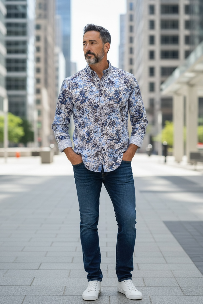 Make a statement with this long sleeve casual shirt, where botanical elegance meets practical design. The vibrant flower print catches the eye while the French placket delivers refined tailoring that elevates your everyday look. Convertible buttoned cuffs give you complete control—adjust them to match your mood, whether you're dressing up for work or keeping things relaxed on the weekend.