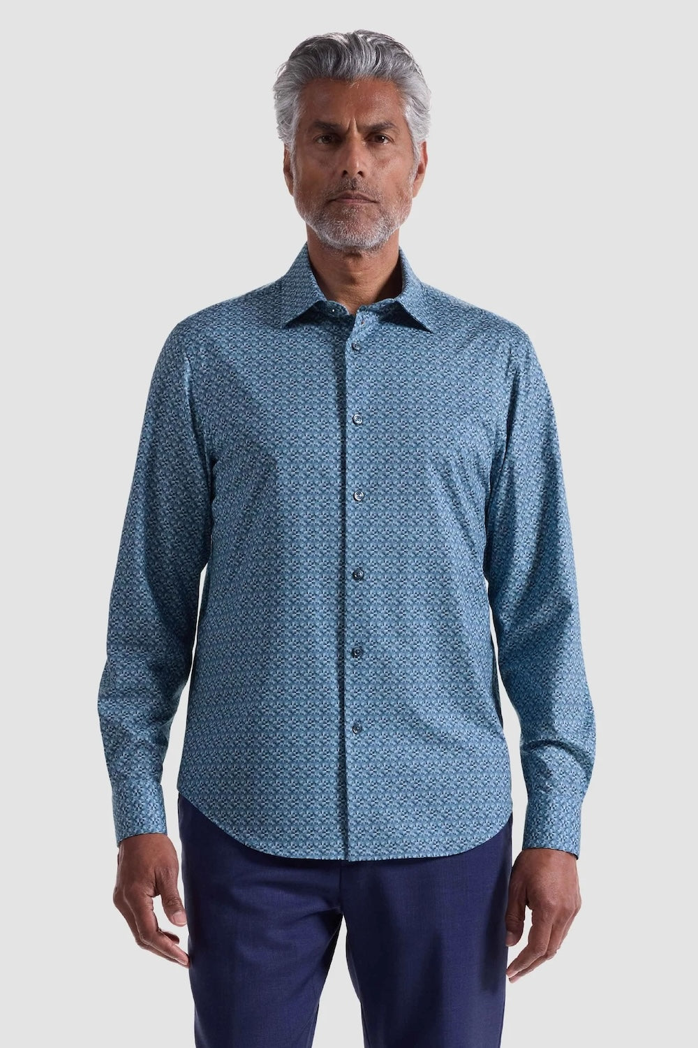 Make a statement with the James Optical Illusion OoohCotton® shirt—a versatile piece that transforms your look from casual to formal. The mesmerizing optical illusion print draws the eye, while refined touches like the point collar and mother-of-pearl buttons add undeniable polish. Designed for flexibility, the curved hem flatters whether tucked or worn loose, and the adjustable notched cuffs customize your fit perfectly or convert to accommodate cufflinks for special occasions.