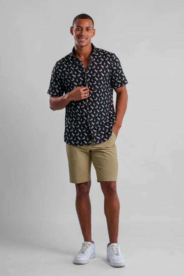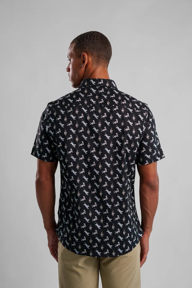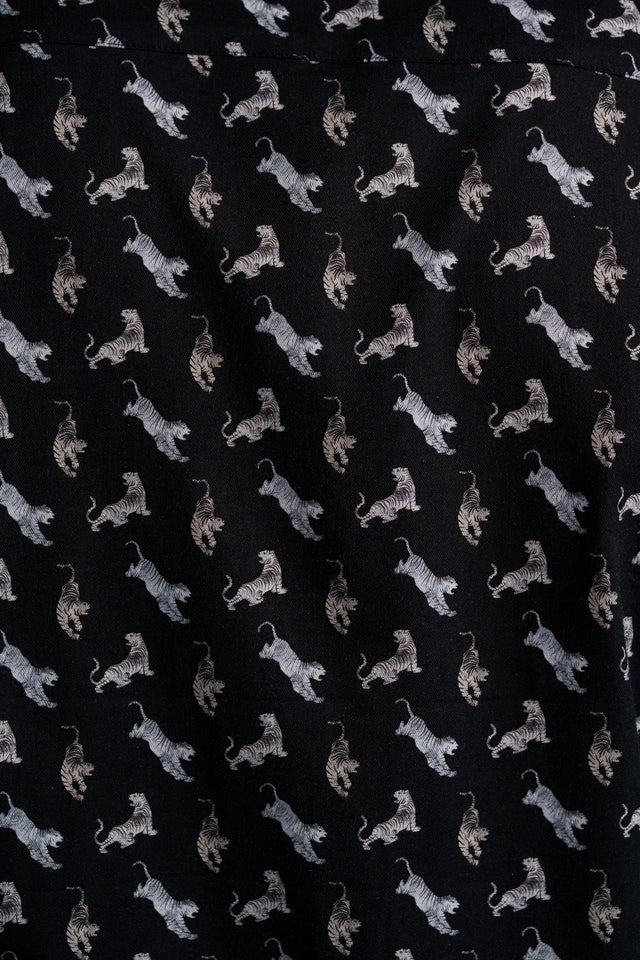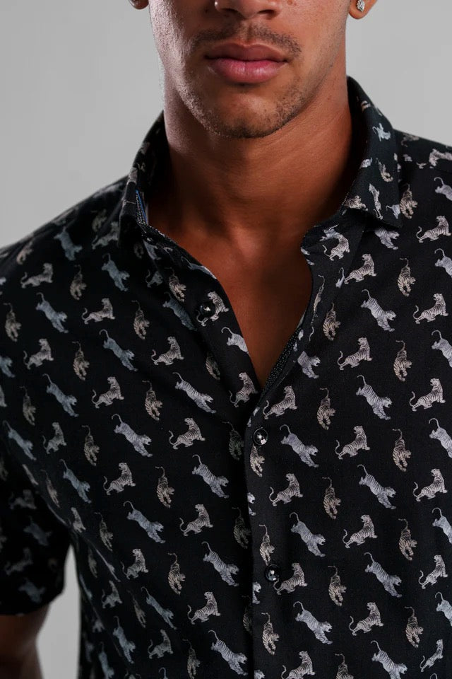 Unleash your bold side with the Nova Big Cat Shirt. This short-sleeve, standard-collar design blends a fierce pattern with a refined fit, making it perfect for stylish summer outings.