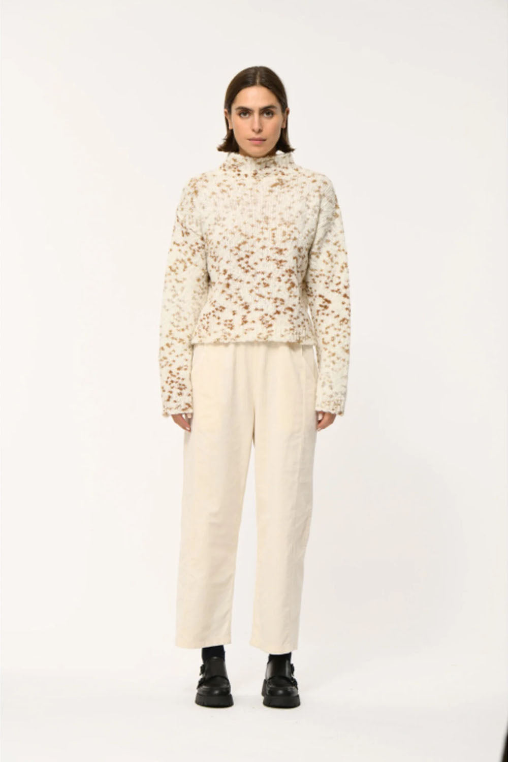 Experience refined comfort with the Komori Cord Pant, crafted from ribbed velvet for a soft, textured feel. Featuring a high elasticized waist, these pants provide a secure yet flexible fit, while the 7/8 length offers a modern, cropped silhouette. Practical slanted side pockets add convenience without compromising style.