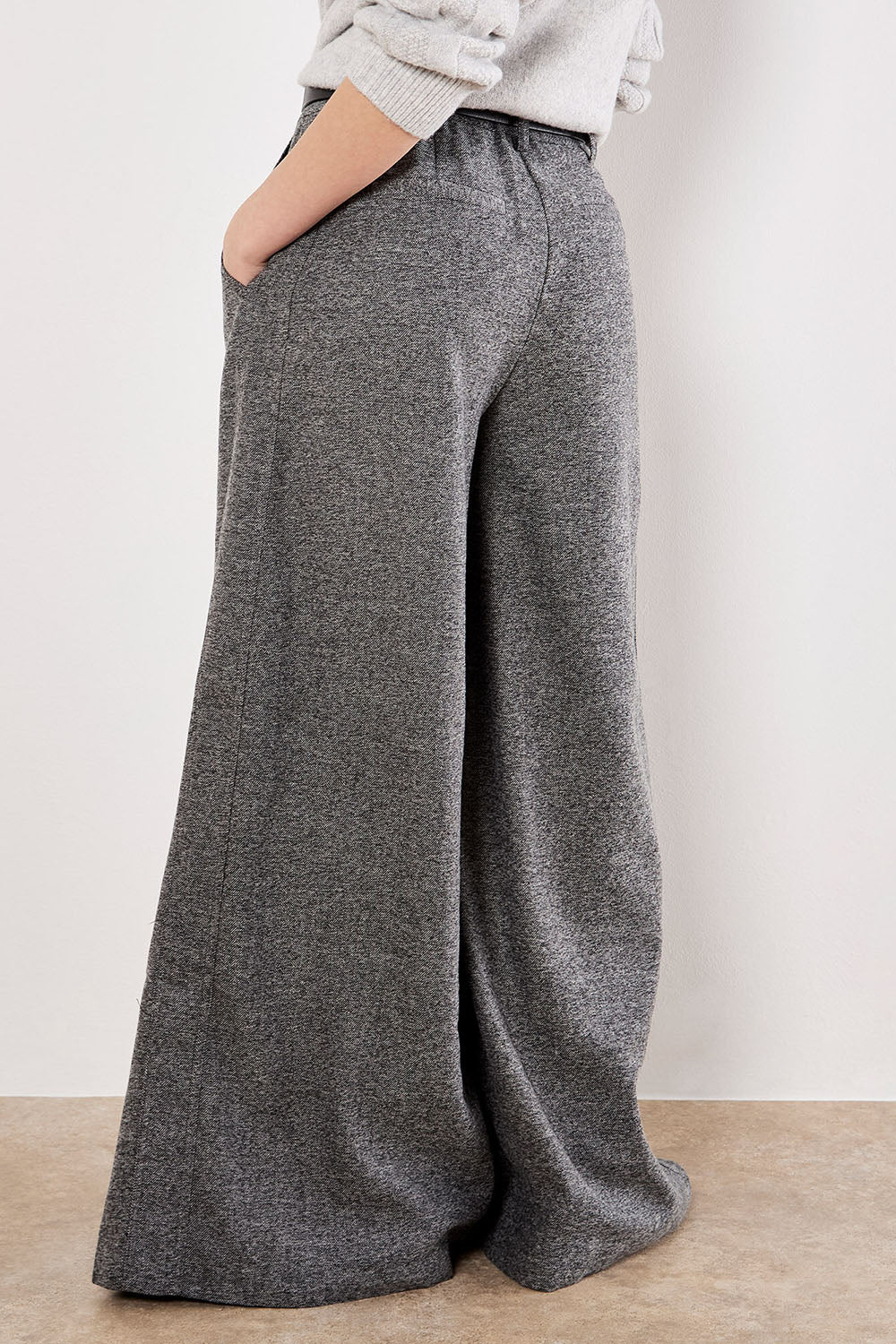 Transition seamlessly from office to weekend in these tailored trousers that redefine versatility. Crafted from soft, woven fabric with a refined herringbone finish, they deliver understated sophistication with every wear. The ultra-wide leg silhouette creates an effortlessly chic proportion, while inverted pleats add dimension and movement. Practical side seam pockets keep your essentials close without compromising the clean lines.