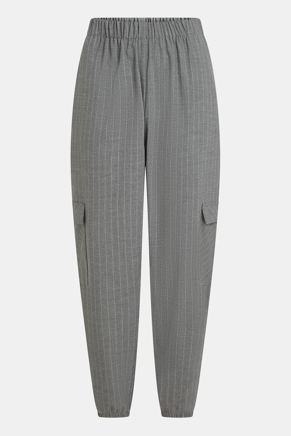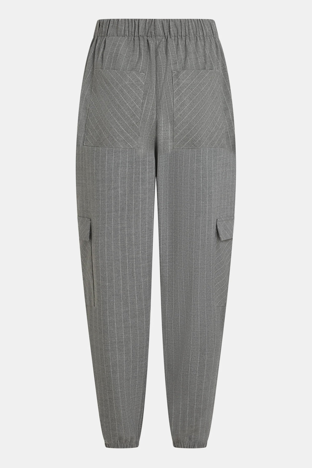 The Stripe Pants in Grey Melange combine timeless pinstripe design with a contemporary tapered fit for a sharp, tailored look. Designed with an elasticized waistband, they provide exceptional comfort and flexibility throughout your day. Practical side and back pockets add convenient storage, making these pants both stylish and functional.
