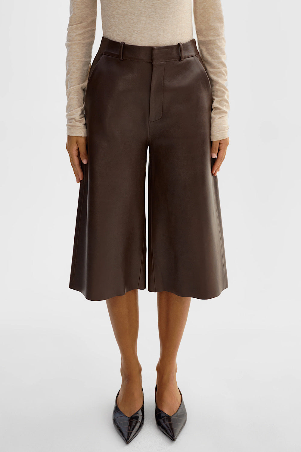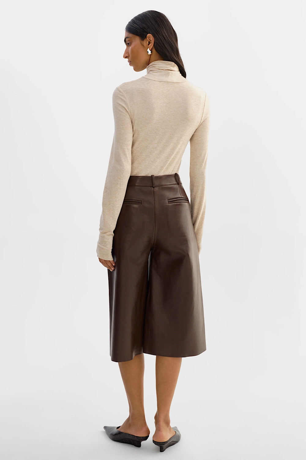 Introducing the LISE Leather Bermuda Short. Crafted from smooth leather, this high-rise short boasts a wide leg and an over the knee length, creating a bold yet wearable silhoutte.