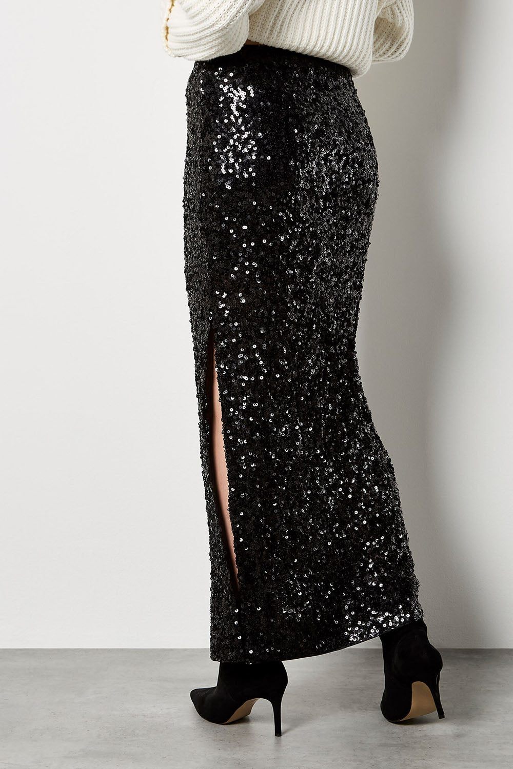 Elevate your wardrobe with this stunning Cluster Sequin Split Maxi Skirt, where glamour meets comfort. Crafted from breathable mesh fabric with a soft lining, it delivers both style and wearability. The elasticized waist ensures a flattering fit for all body types, while the dramatic split hem allows for graceful, unrestricted movement with every step. Perfect for evening events, parties, or whenever you want to make a memorable impression.
