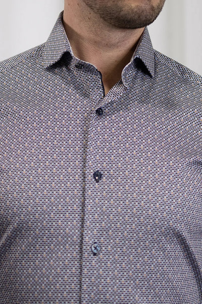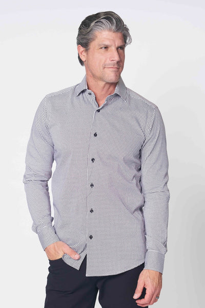 Long Sleeve Casual Shirt in Grey Geometric Print