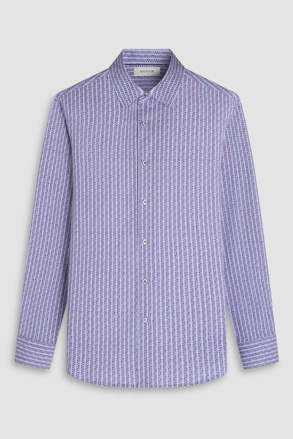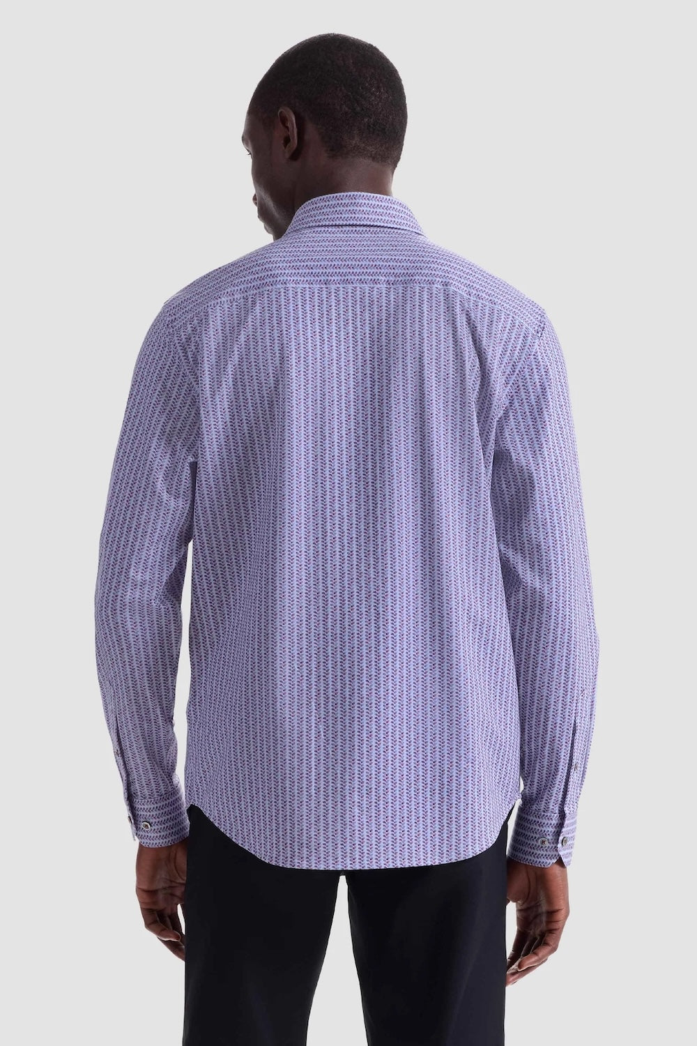 The James geometric leaf print OoohCotton shirt from Bugatchi features a point collar, adjustable notched cuffs, mother-of-pearl buttons and a curved hem perfect for wearing the shirt tucked in or untucked. OoohCotton is a performance, double-mercerized cotton with eight-way stretch. The wrinkle-resistant fabric is quick-dry and easy-care.