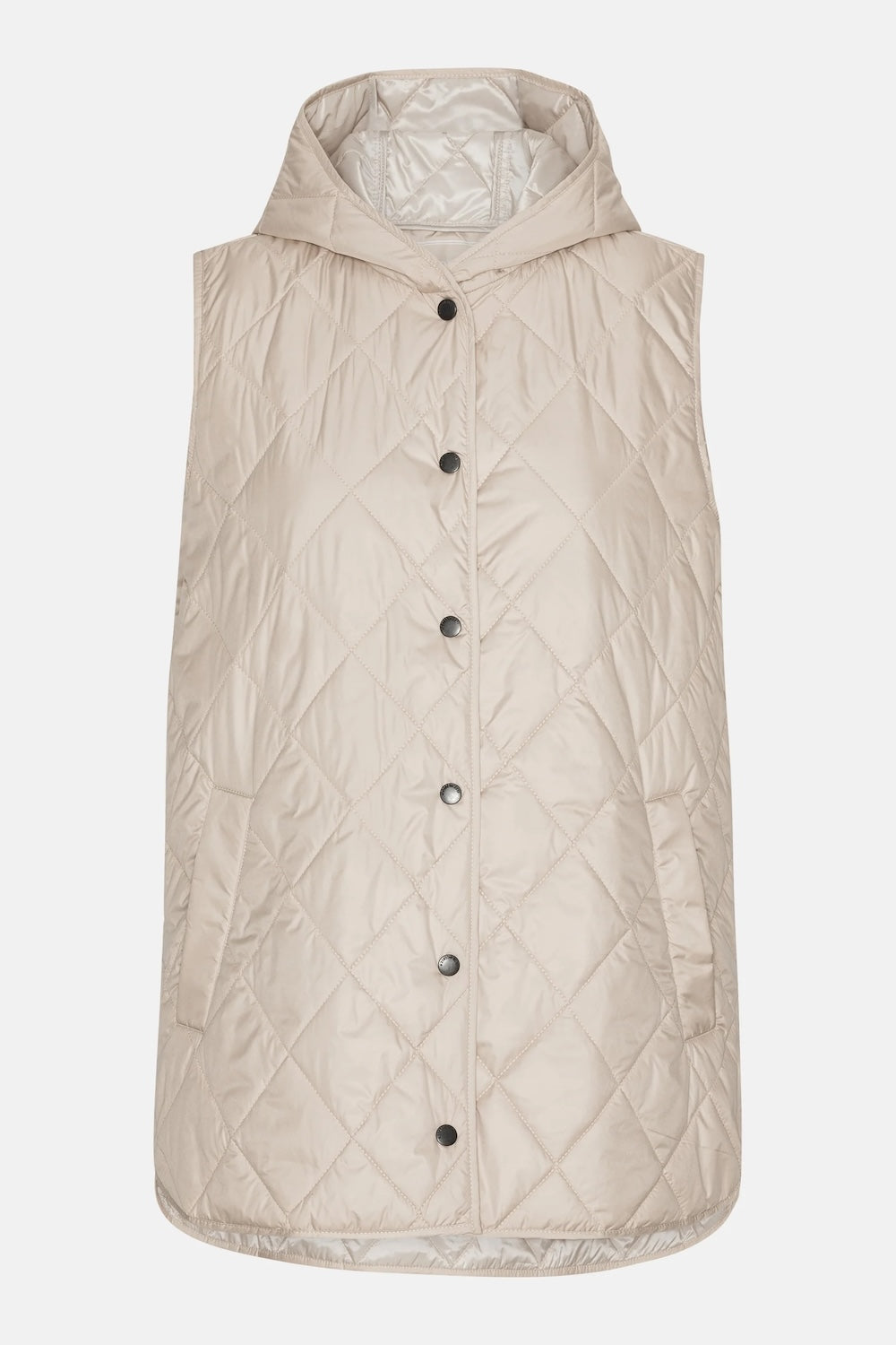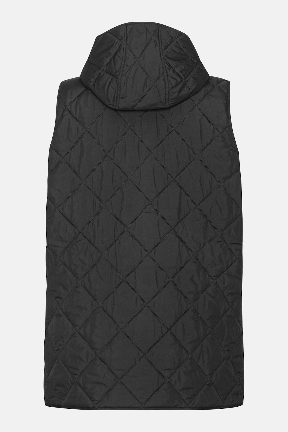 Layer up with this quilted long vest, designed to keep you warm without the bulk. The diagonal quilted pattern adds visual interest while the hood provides extra coverage on chilly days. Slanted jetted pockets offer practical storage with a sleek silhouette, and branded logo buttons deliver a polished finish. The curved hemline and side slits ensure unrestricted movement, whether you're running errands or relaxing.