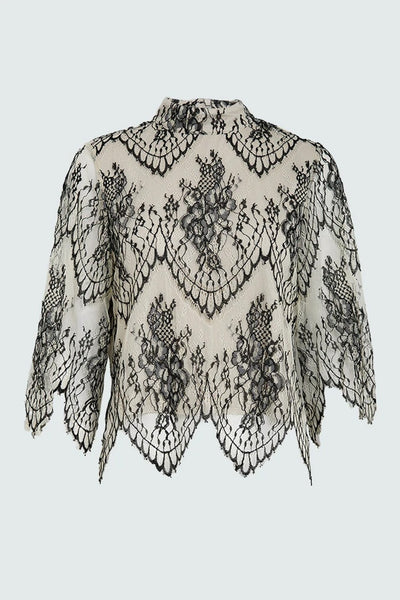 Loretta Velvet Leafy Sheer Blouse in Navy
