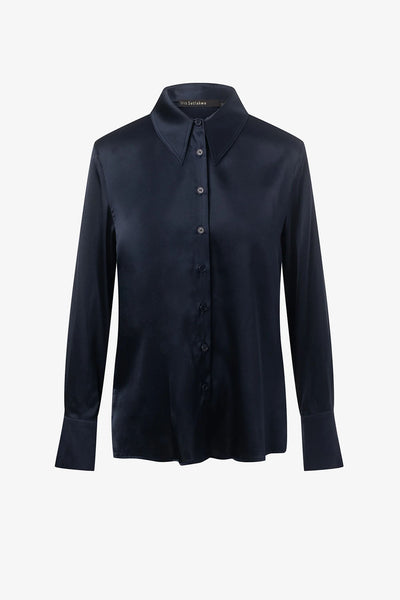 Kether Silky Long Sleeve Casual Shirt in Salute Navy