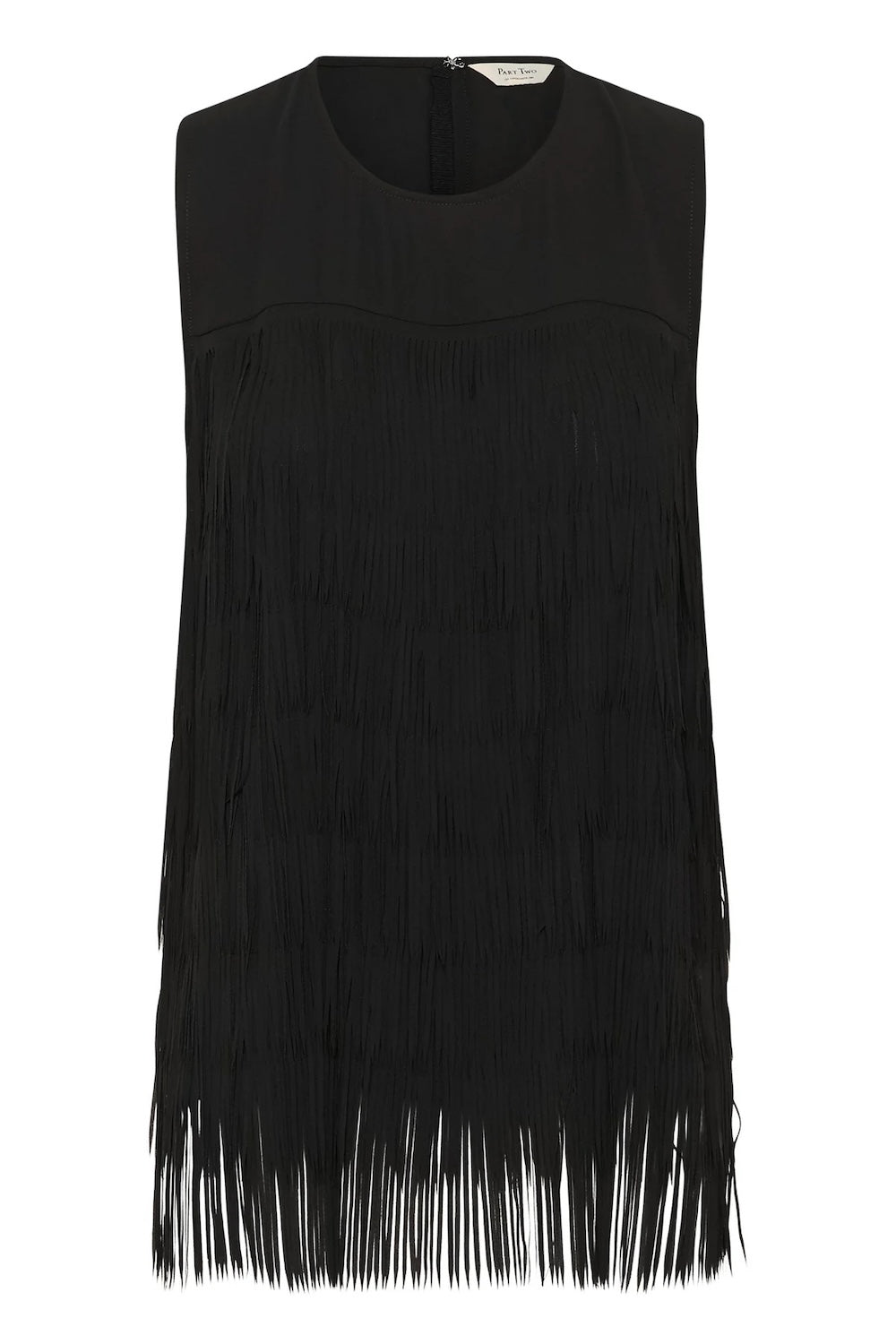 Transform your festive moments with the Vitalia Shirt, where elegance meets playful movement. This sleeveless design showcases exquisite layered fringes that shimmer and sway with every step, adding captivating dimension to your celebration look. The streamlined silhouette and timeless proportions ensure you'll feel confident and polished, while the dynamic fringe detail keeps things exciting and memorable.