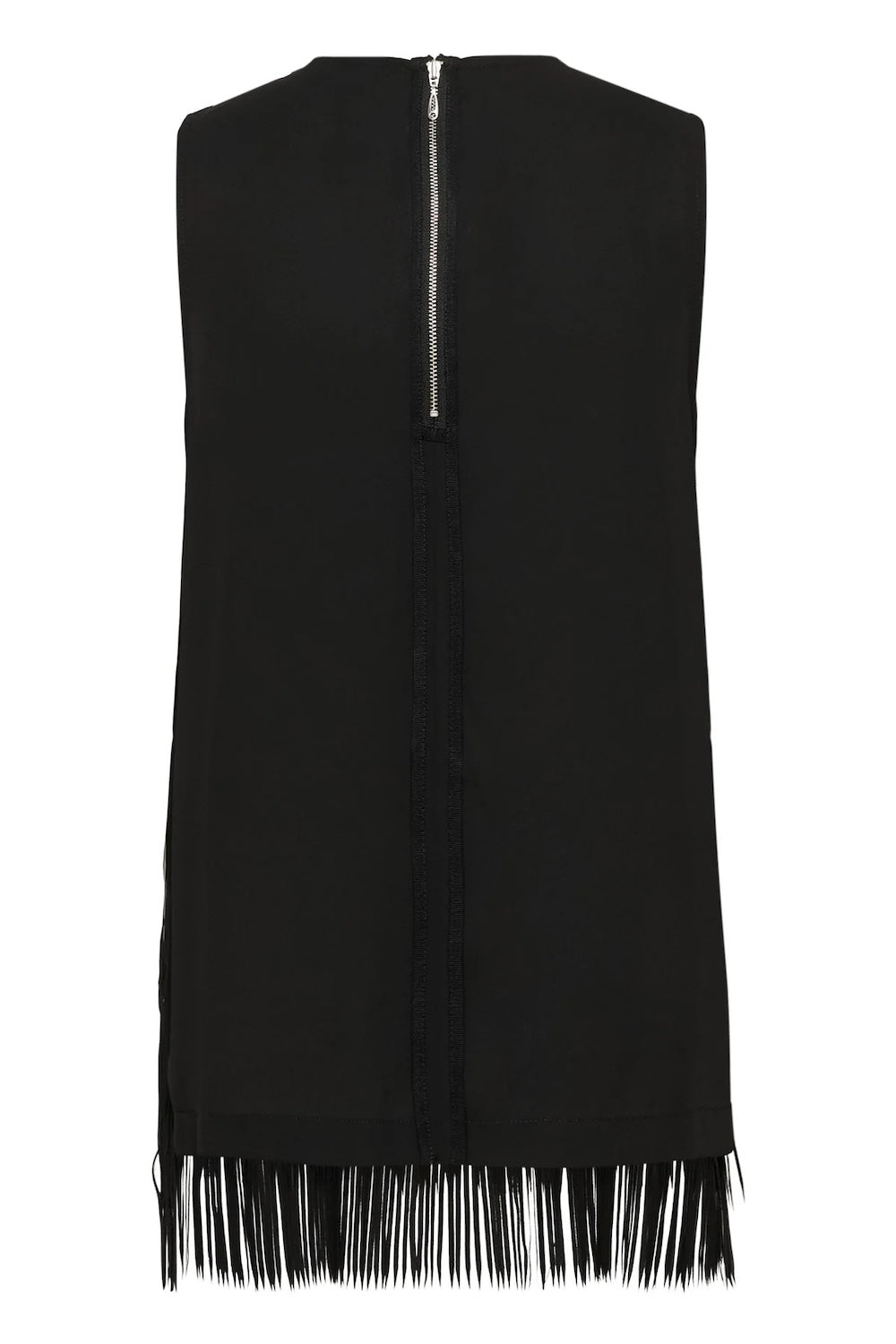• 100% Polyester (Recycled) • Layered fringes on front • Zippered back • Care according to label instructions