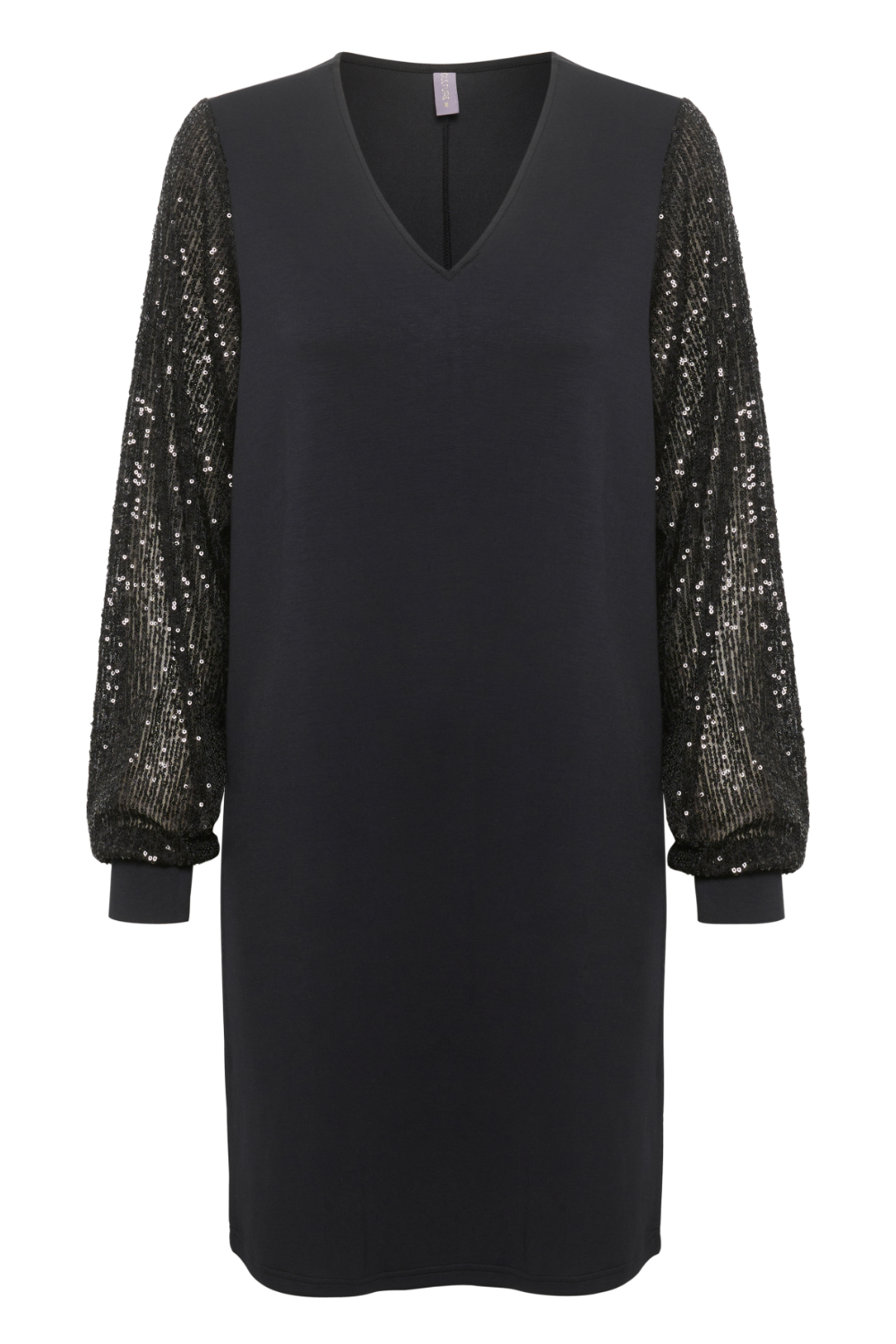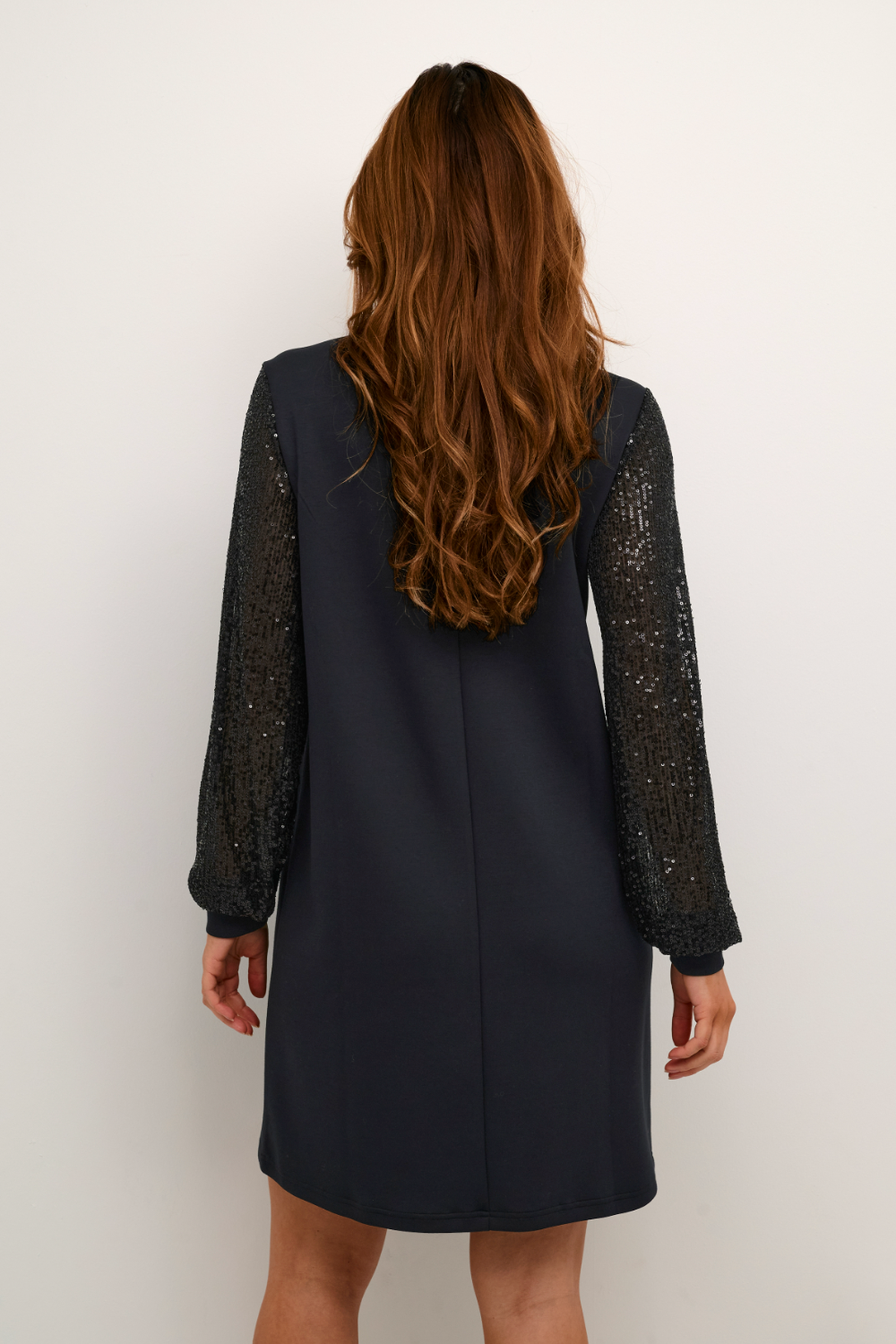 This dress has a comfortable and flattering A-shape. With its long sleeves, festive sequin sleeves and knee length hem, it's perfect for any party. Combine it with a blazer and booties for a sophisticated look.