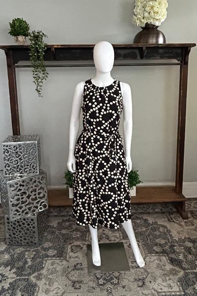 Short Sleeve Relaxed Dress in Black/ Off White Print